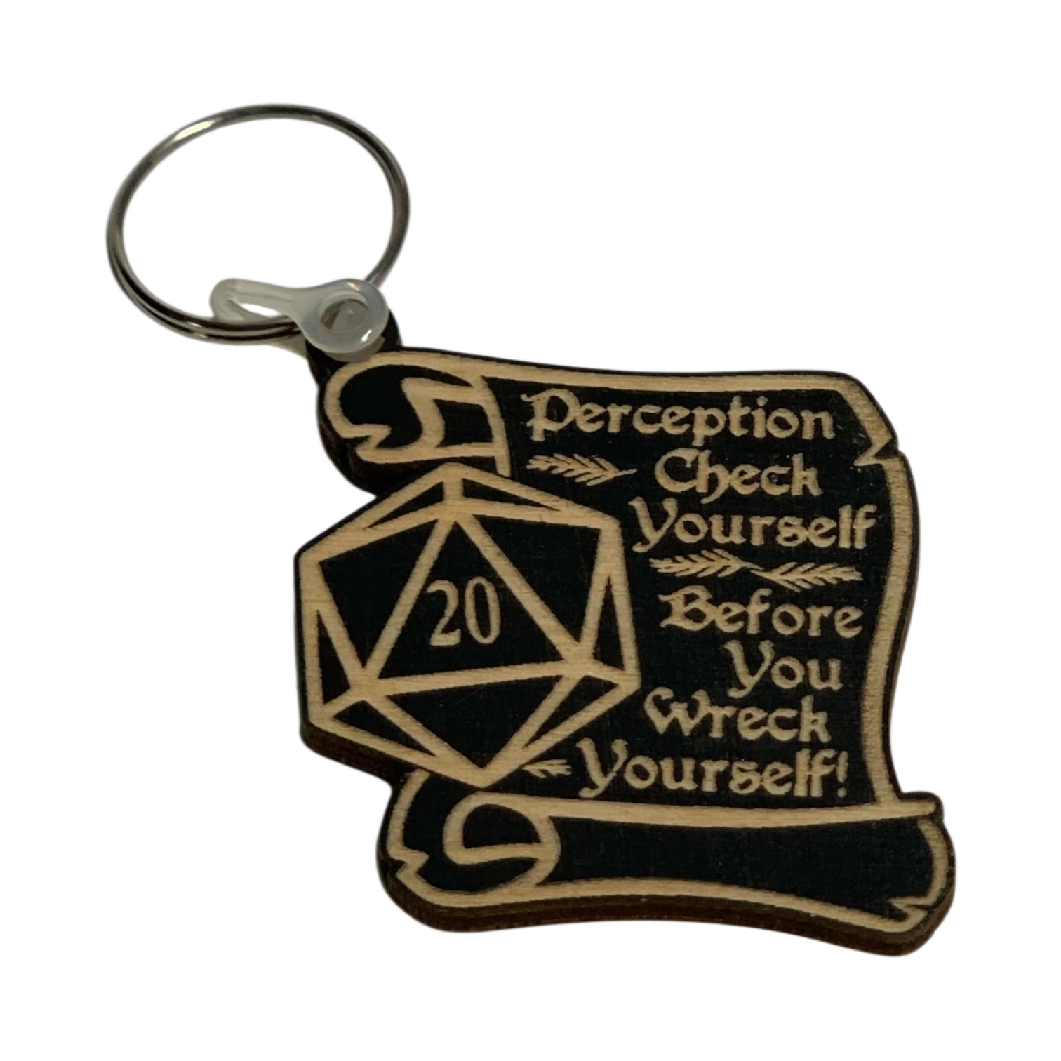 Roll a natural 20 on style with our “Perception Check Yourself Before You Wreck Yourself” Wooden Keyring — the ultimate accessory for Dungeons & Dragons fans and tabletop adventurers.